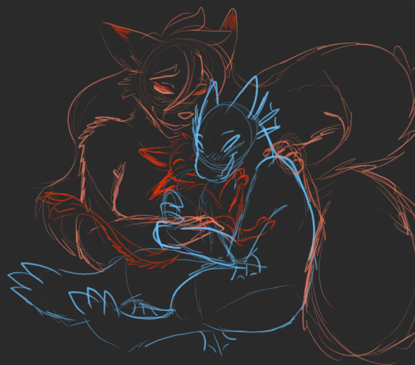 Sketch of Sylvia-2, my destiny exo oc, with Lillian (Siren's oc) by Siren (?)